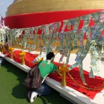 Da unser Besuch direkt auf einen buddhistischen Feiertag gefallen ist, waren viele Feierlichkeiten, Ausstellungen und religiöse Zeremonien zu bewundern. Besonders begeistert waren wir von der Gastfreundlichkeit der Thailänder bei dieser Veranstaltung. Mehrfach wurden wir zu kostenlosen Speisen und Getränken eingeladen. Dabei wurden wir direkt an langen Schlagen wartender Einheimischer vorbei geführt und haben unsere Teller noch vor allen anderen in die Hand gedrückt bekommen. Ein Mönch hat uns Außerirdische interessiert mit seinem Handy gefilmt, denn hier waren eher weniger Touristen zugegen. Andere Gäste haben uns direkt Sitzplätze an Ihren Tischen freigemacht und uns zu sich gewunken. Wir wurden immer mit einem lächeln und einem nett klingenden thailändischen Satz empfangen, denn nicht jeder kann hier Englisch sprechen. Aber die Kommunikation hat auch so irgendwie funktioniert.