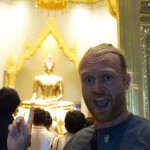 Ansonsten haben wir den königlichen Tempel Wat Pho besucht. Die Attraktion ist hier, neben vielen eindrucksvollen Gebäuden und Statuen, ein 46 Meter langer und 15 Meter hoher vergoldeter Buddha (liegend). Im Anschluss sollte es in den Grand Palace (Königlicher Palast) gehen. Dieser war aber leider aufgrund des Feiertages im inneren nicht zu besichtigen. Daher haben wir für den Eintritt uns das Geld gespart. Draußen warten, wie bei allen stark besuchten touristischen Sehenswürdigkeiten der Welt, Leute, die einem das Geld auf unterschiedliche Art aus den Taschen ziehen wollen. Und ich meine damit nicht ganz normale Verkäufer. Manche erfinden Geschichten: „der Palast macht erst später auf, aber in der Zwischenzeit habe ich hier eine supergünstige Tour für dich“; andere wiederum weisen Touristen darauf hin, dass der Eintritt nur in gedeckter Kleidung möglich ist. Was richtig ist, aber anstatt auf den Kostenlosen Verleih von Tüchern und Bademänteln am Eingang zu verweisen, werden Scharen von Touristen an Verkaufsstände gelockt. Zugegebener Maßen haben es manche auch nicht anders verdient. Denn gewarnt wird jeder Tourist im Vorfeld über diese Maschen.